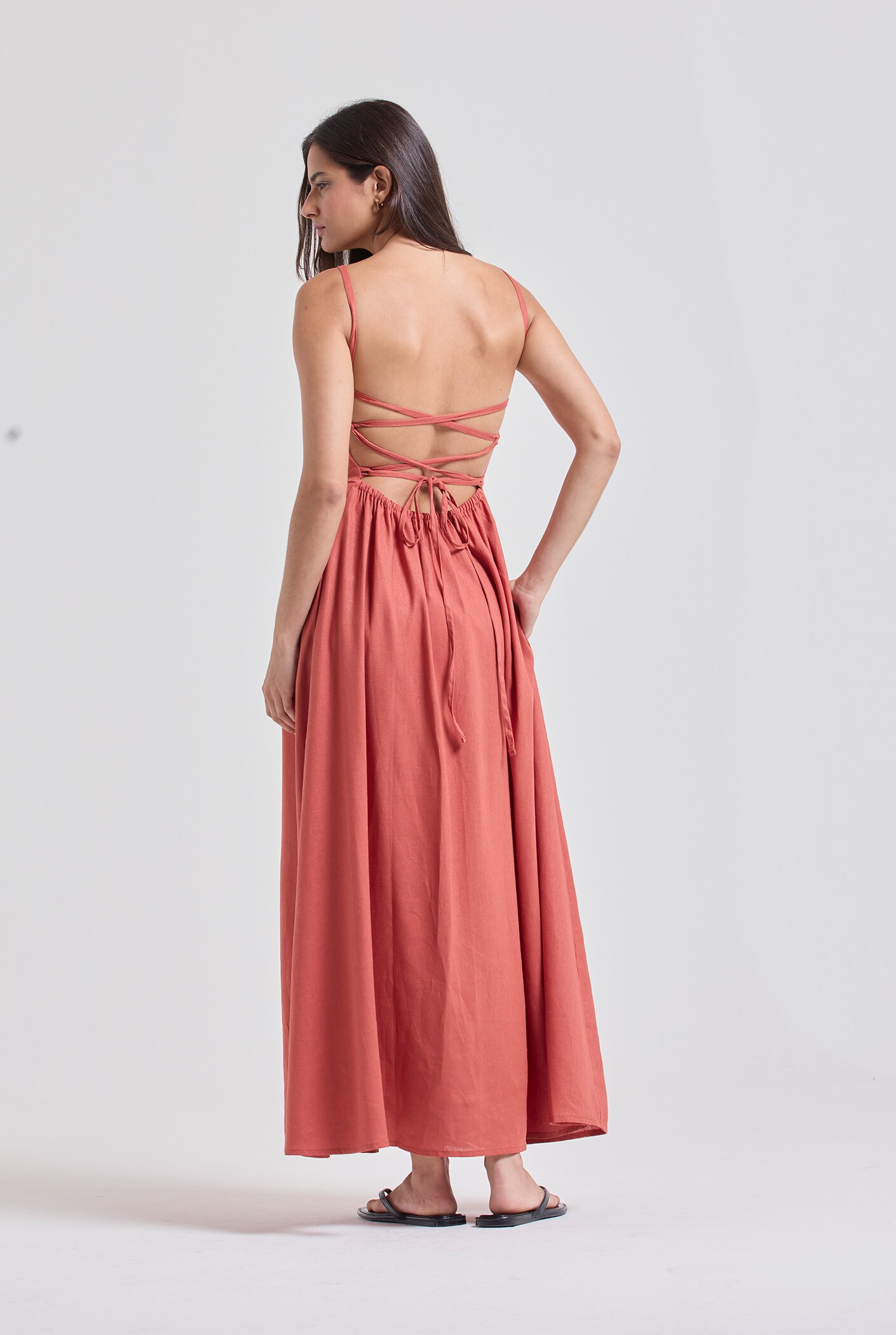 VESTIDO CELINA LINHO TELHA